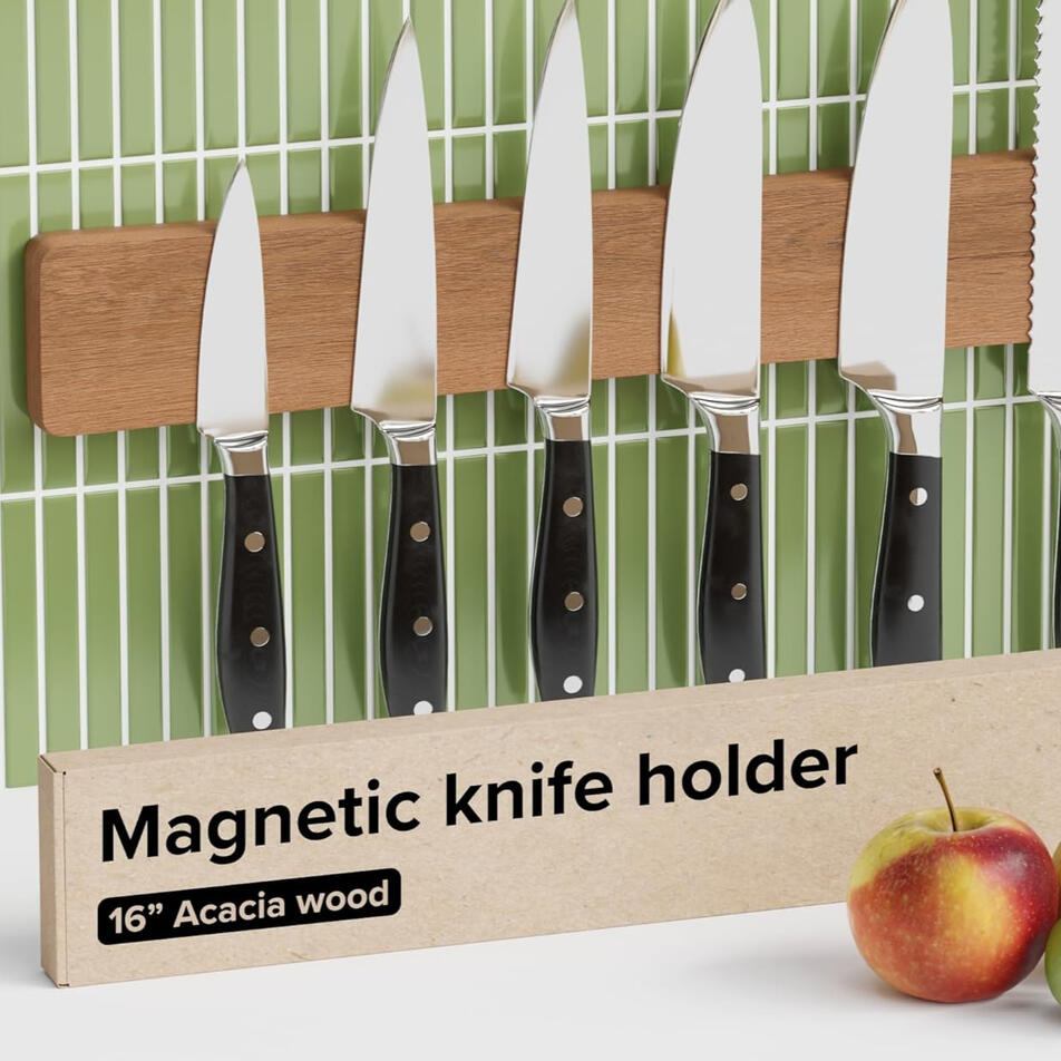 Ditch the bulky knife block. This sleek wall-mounted magnetic strip frees up counter space and keeps tools within reach.